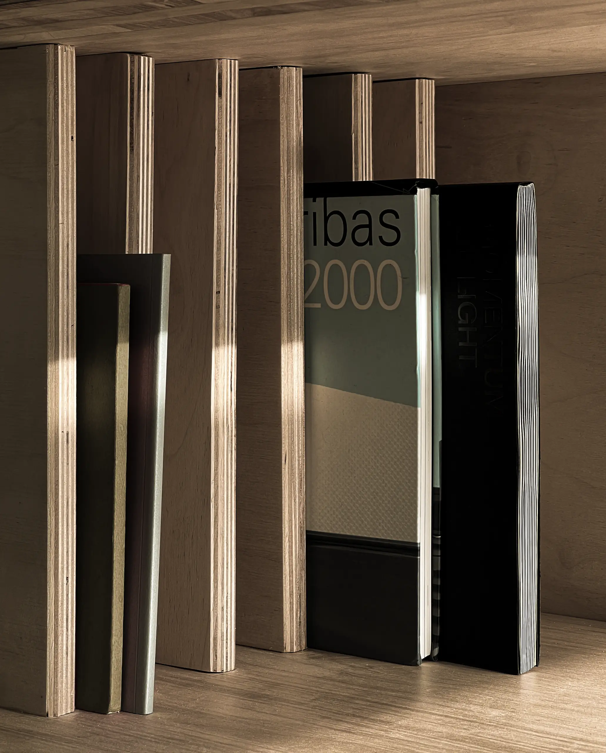 Planes supported by seven vertical slats giving the form an illusion of weightlessness, allowing light to pass through.
